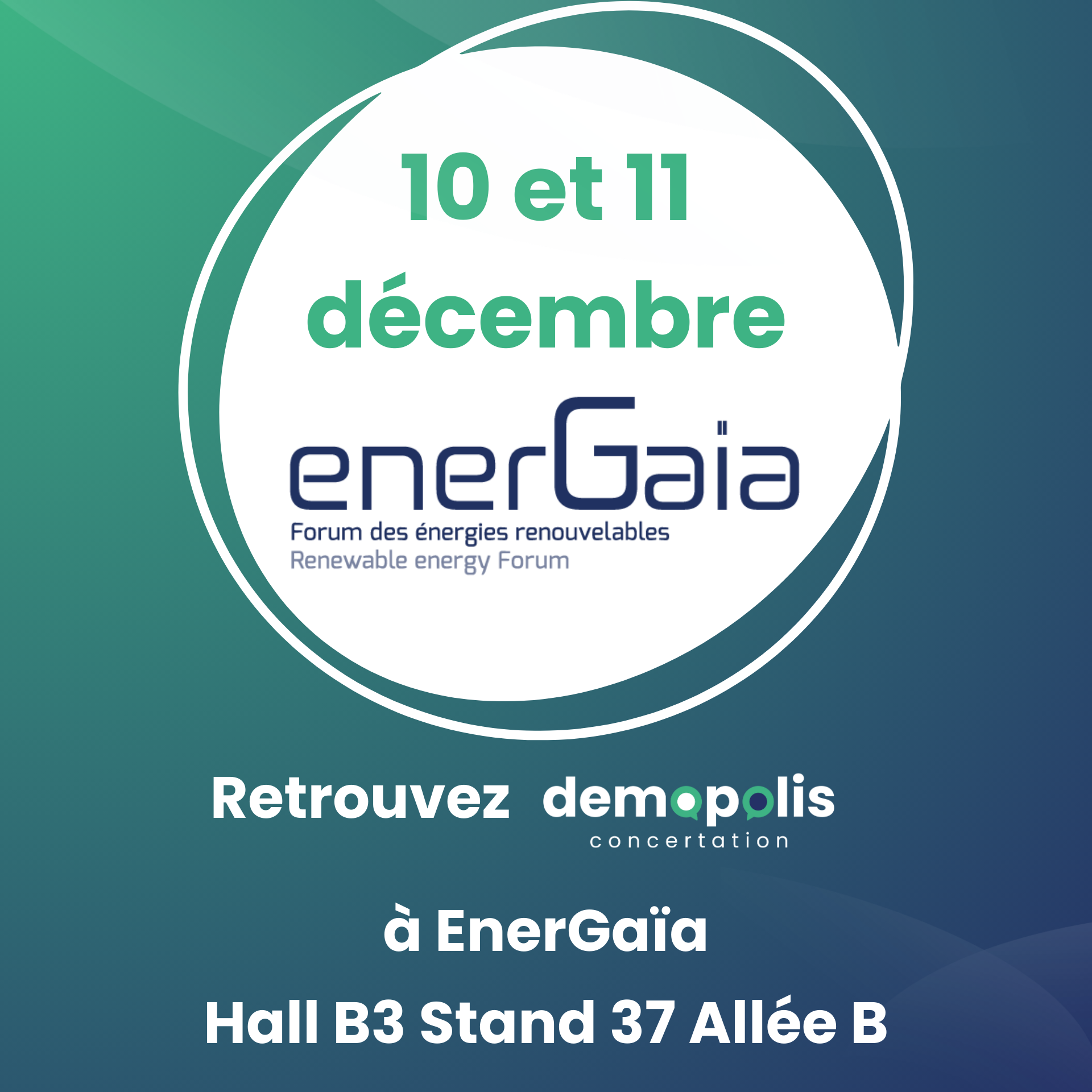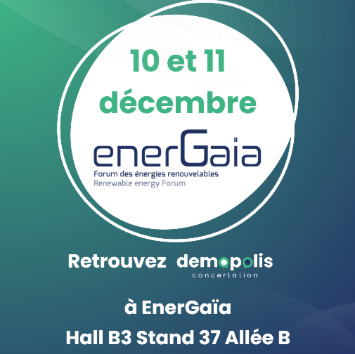 Le compte à rebours est lancé… ⏳ Dans 15 jours, l’équipe Demopolis Concertation sera à Montpellier pour le Forum EnerGaïa, le rendez-vous incontournable des acteurs