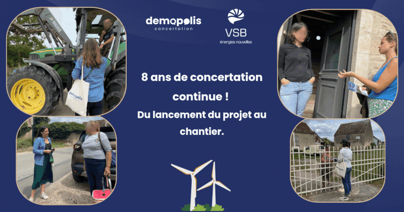 Depuis plus d’un an, Demopolis Concertation va à la rencontre des habitants et propriétaires concerné par un projet éolien dans le Maine-et-Loire : porte-à-porte, réunions