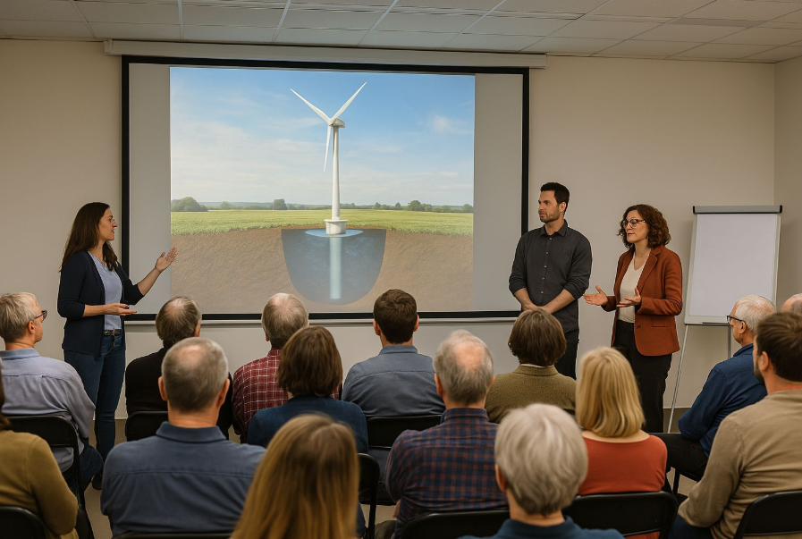 Première réunion publique réussie hier soir autour d’un projet aussi novateur qu’ambitieux : le tout premier parc d’éoliennes rétractables ! ⚙️ L’objectif : Installer des