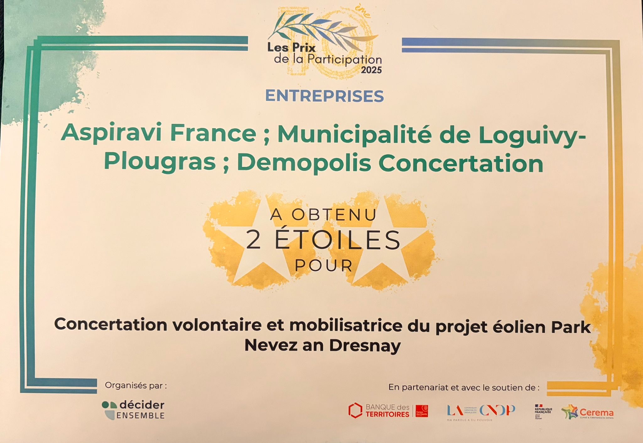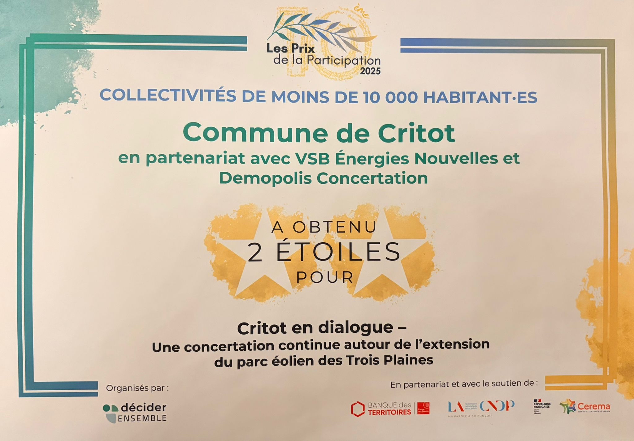 Tous les ans, depuis 2019, au moins un de nos clients est récompensé pour la qualité de la démarche de concertation de communication publique qu’il mène avec nous.